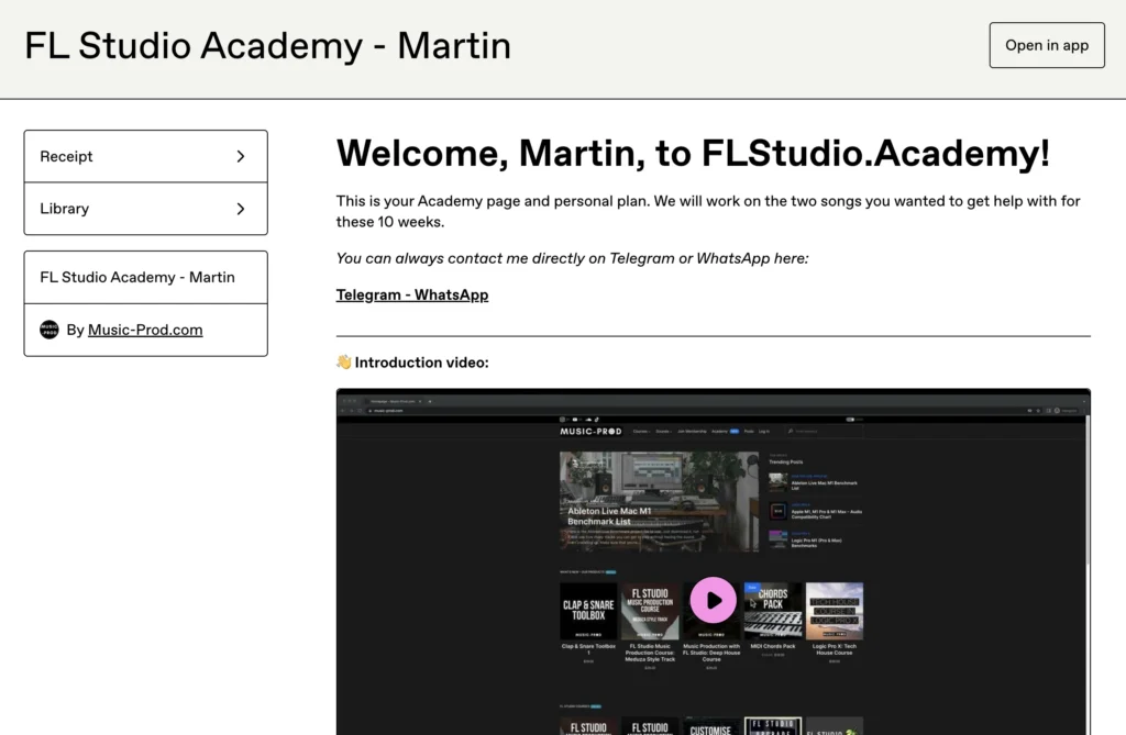 Each Saturday – You will receive a video from us with the personal studio session recorded as well as the modified version of your project file that we worked on. On this video, you will see us working on your project and this is screen recorded together with my voice so you know what we do. You can watch this video whenever you want.